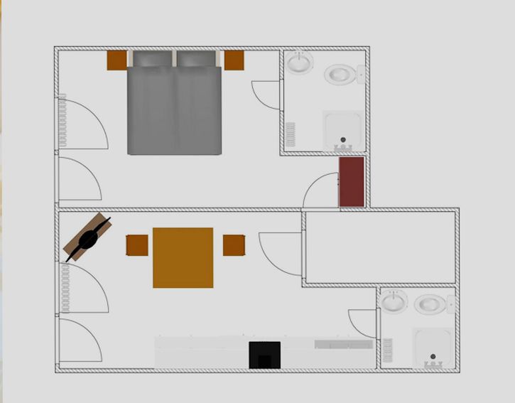 Het heeft 2 aparte ingangen, vanuit de mooie woonkeuken en vanuit de slaapkamer.